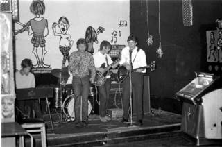 Second picture of The Circuit, playing at The Hillside Social Club, Dover Road, Folkestone, in 1966. From left to right: Roger Bowden (keyboards), Les Peel (Vocals) Dave Shackle (Drums, unseen obscured by vocalist Les Peel), Rod Jones (Guitar), Mick Wilkins ( Bass Guitar and vocals).