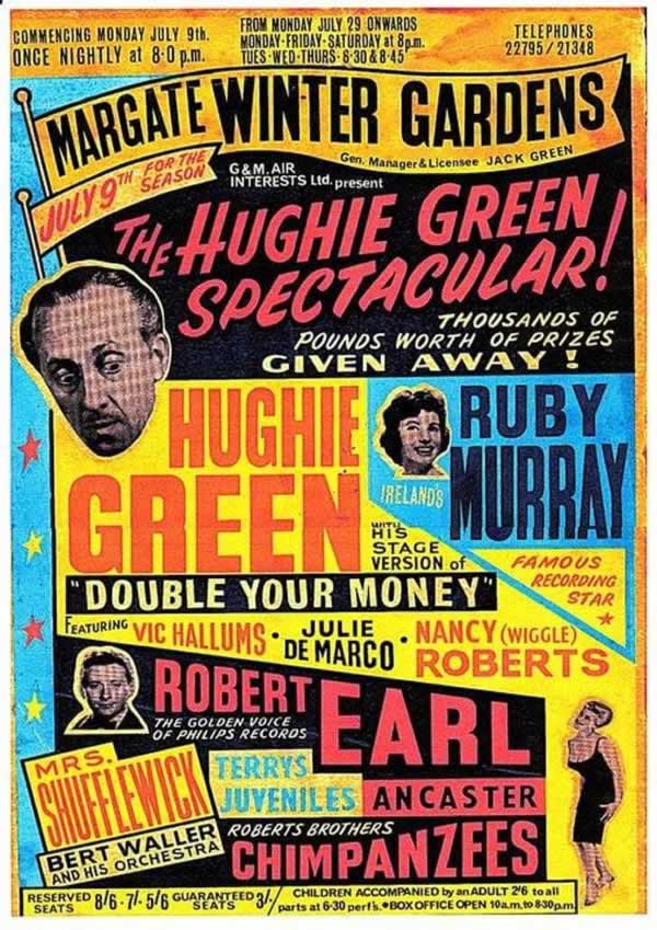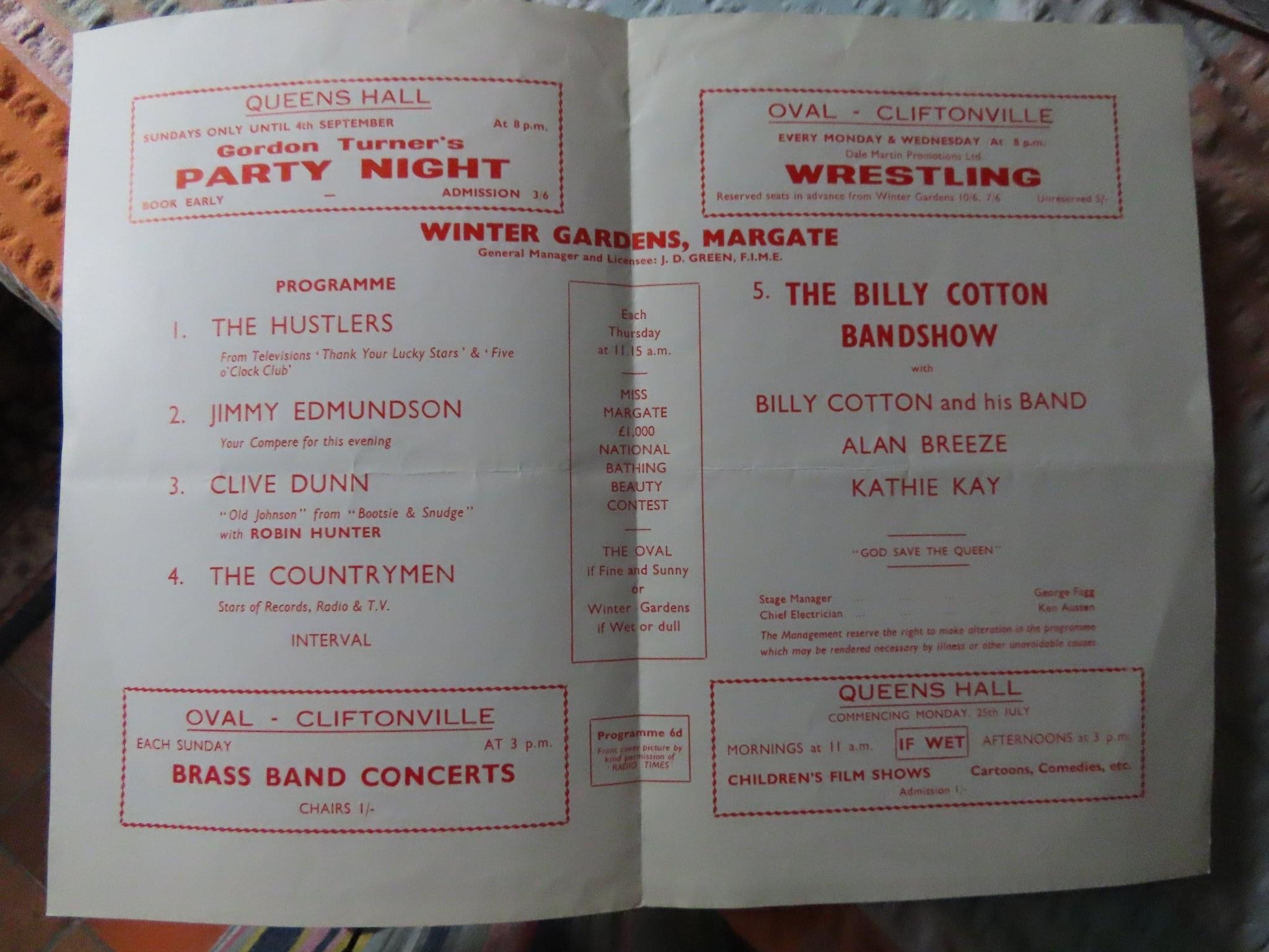 - Advertised as Winter Gardens - Margate General Manager and Licensee : J. D. Green Sunday, May 9 at 6 p.m. and 8.30 p.m. Two Performances Only plus All Star Supporting Programme Reserved 12/6, 10/-, 7/6 Unreserved 5/-.