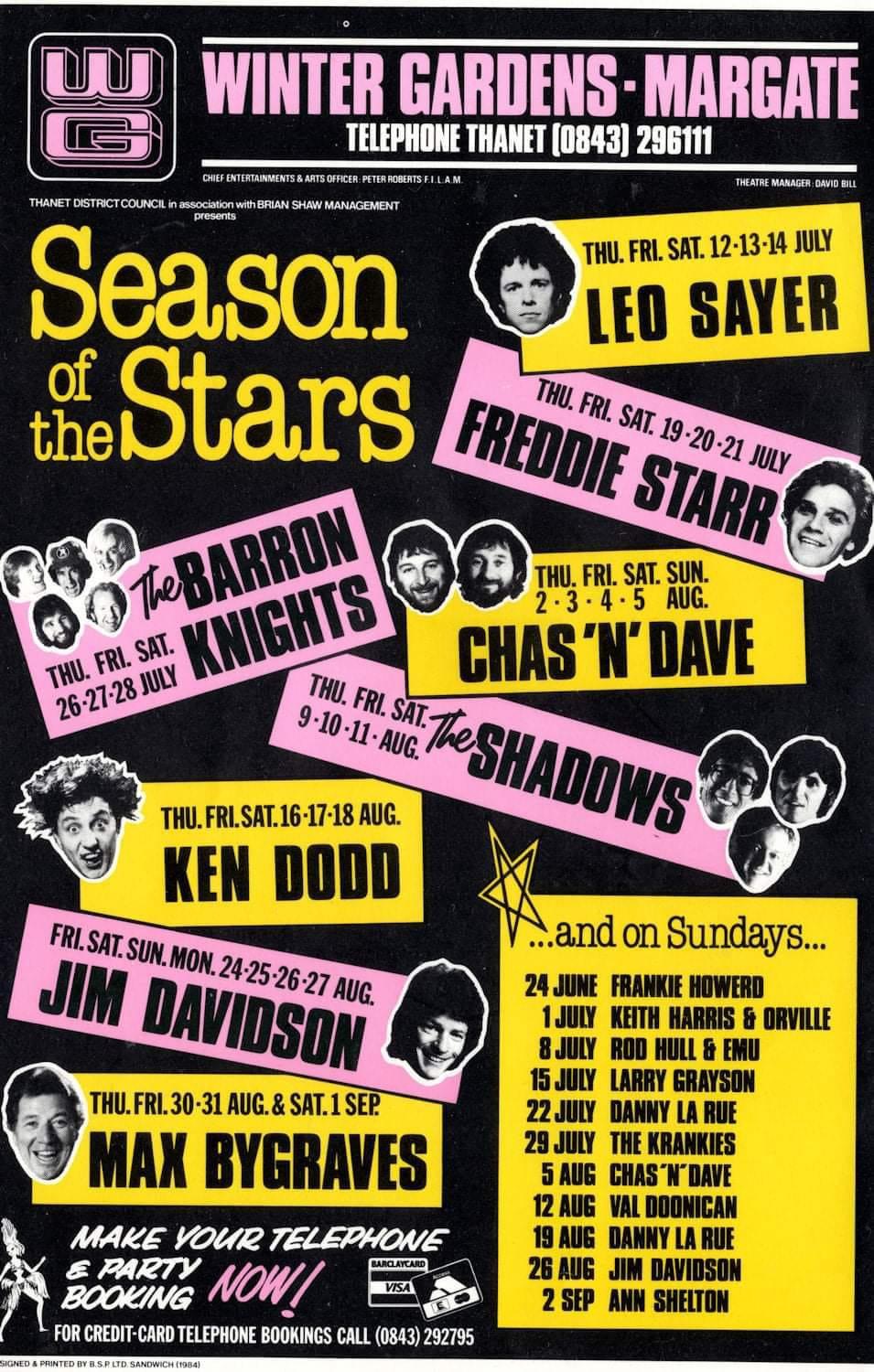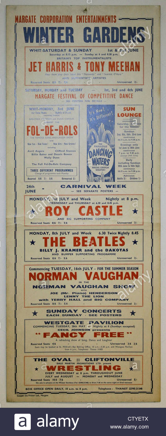 - Whit-Saturday, June 1, 1963: Jet Harris and Tony Meehan, Tommy Bruce and the Bruisers plus support. Advertised as Winter Gardens, Margate Saturday, 1st June, & Sunday, 2nd June, 1963 And Full Supporting Programme.