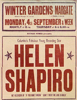 - Advertised as Winter Gardens . Margate Monday, 4th September & Week Nightly at 8 p.m. Thursday at 6 & 8.30 p.m. Arthur Howe's presents Columbia's Fabulous Young Recording Star *Helen * Shapiro Hit Recorder Of 'If You Don't Know' 'Don't Treat Me Like A Child.'