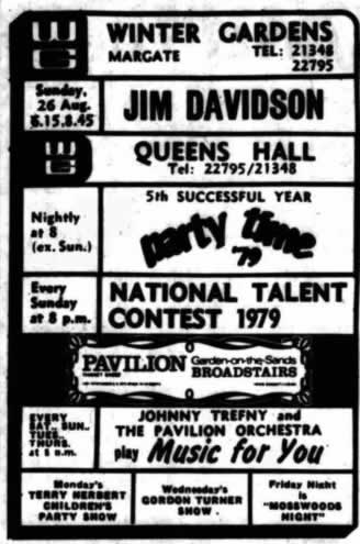 - Saturday, August 22, 1964: Adam Faith backed by The Roulettes, Dave Reid, Liz Laurie, Jean and Peter Barbour, Bobby Dennis, Tina Scott, Bert Waller and his Orchestra