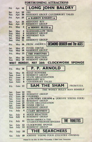 The Moody Blues a chart album band with an American tour under their belts earned just under £400 for 1 hour and toured in a long wheel-base pale blue Transit (quite rare at the time)